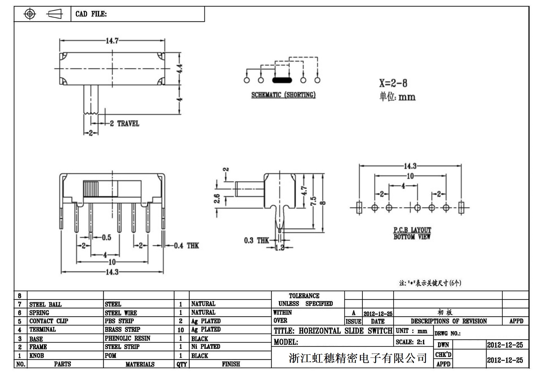 Horizontal toggle switch sidedial/horizontal slide switch technical indicators