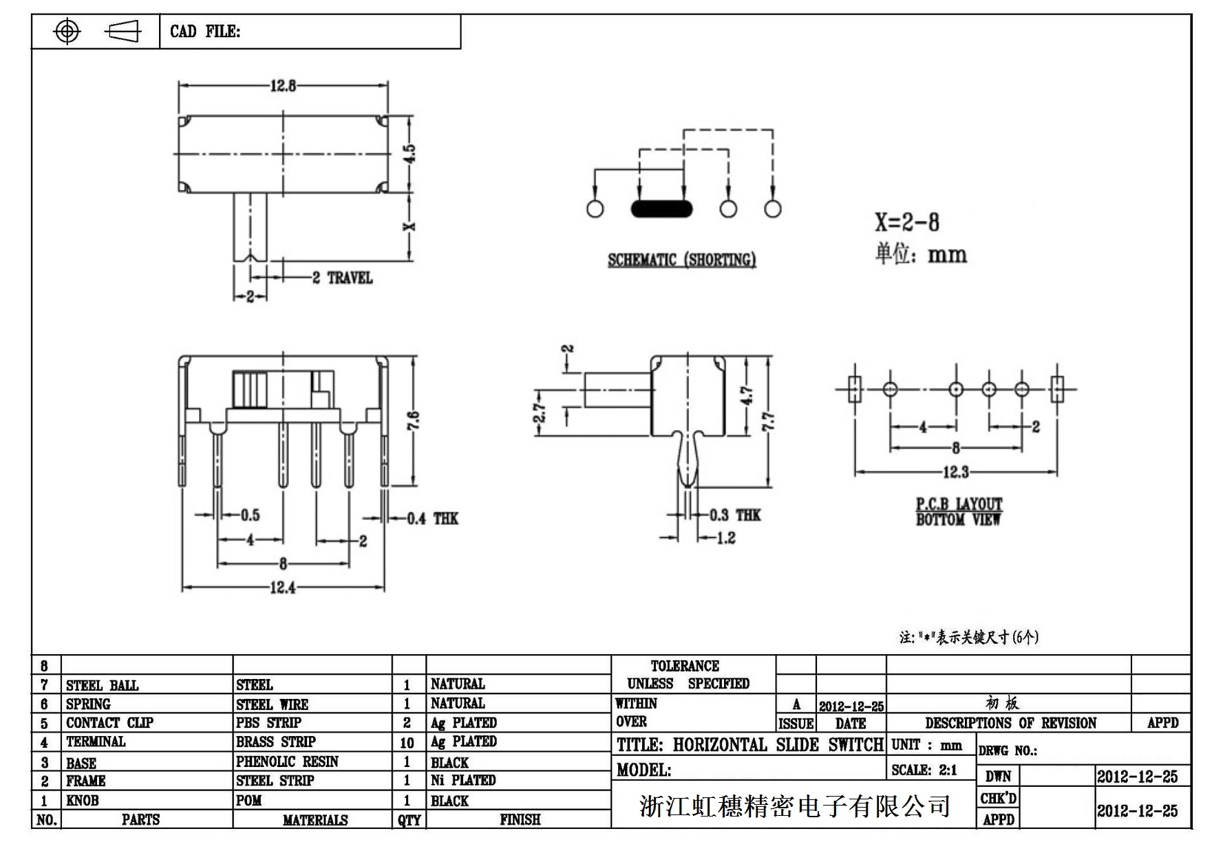 Horizontal toggle switch sidedial/horizontal slide switch technical indicators