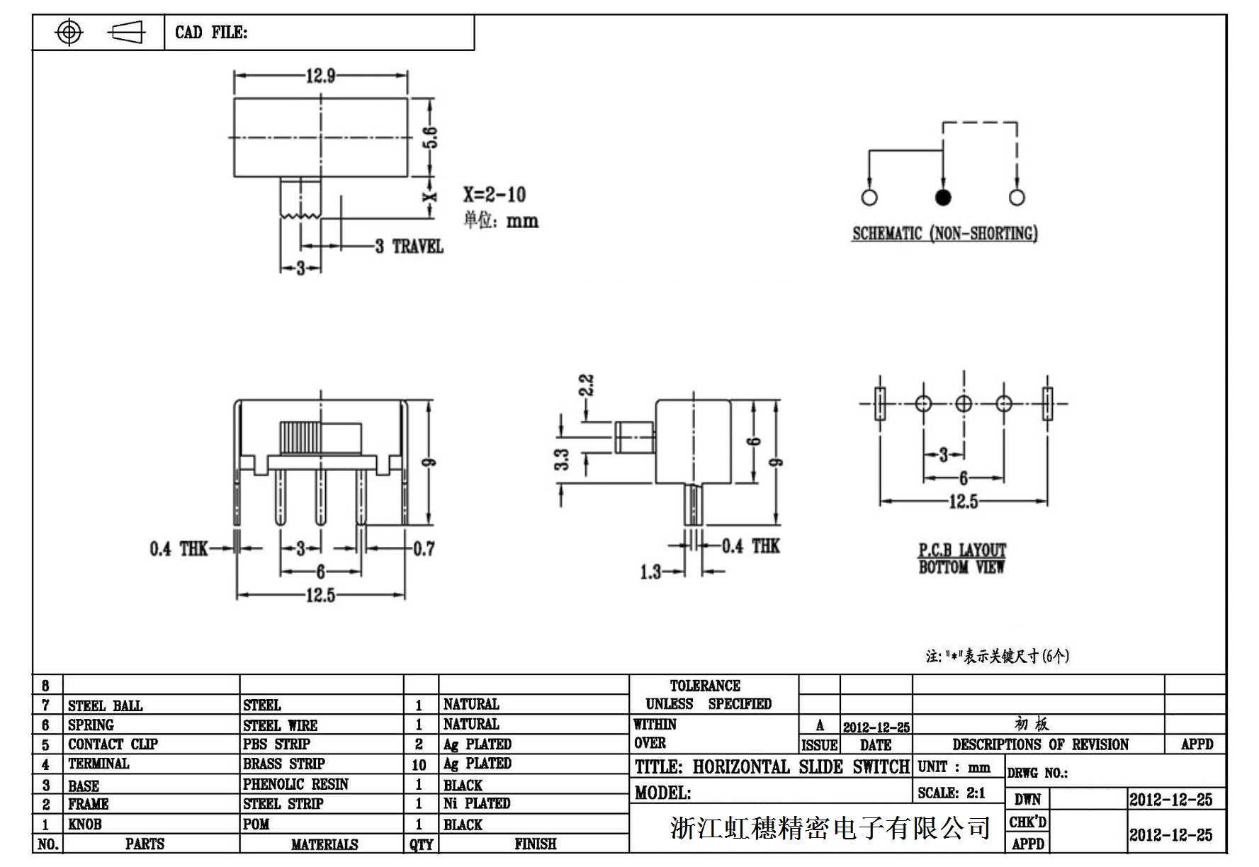 Horizontal toggle switch sidedial/horizontal slide switch technical indicators