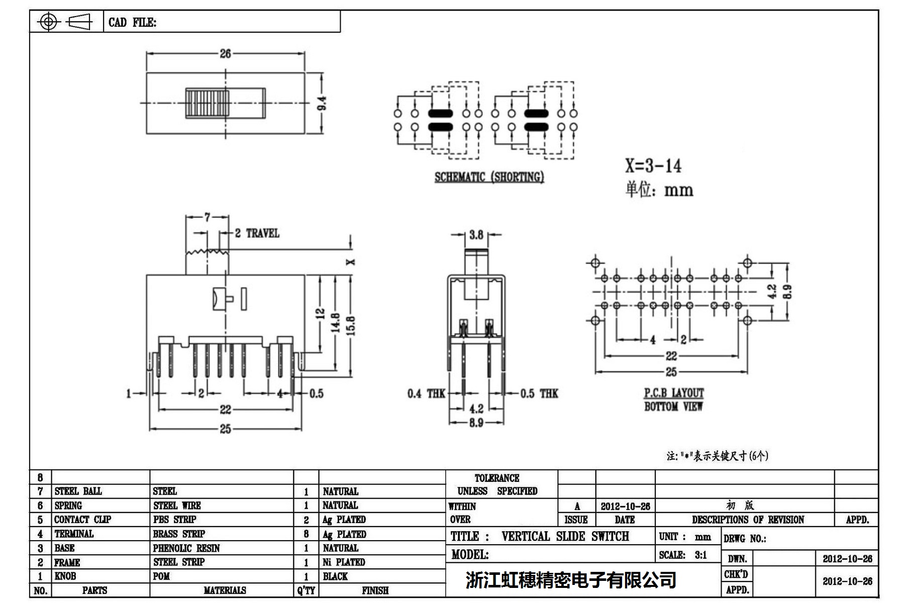 Verticaltoggle switch side dial/ Vertical slide switch technical indicators