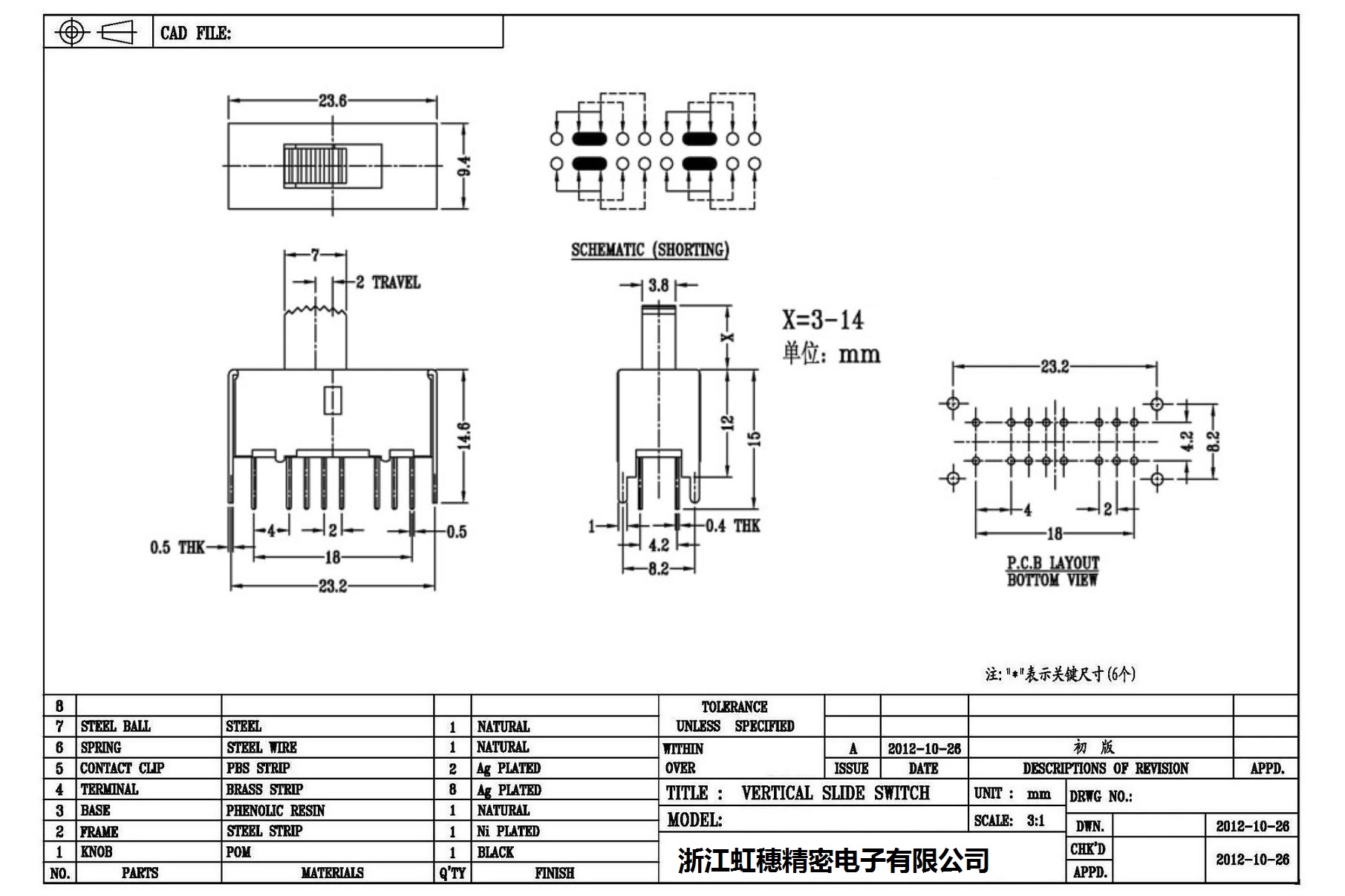 Verticaltoggle switch side dial/ Vertical slide switch technical indicators