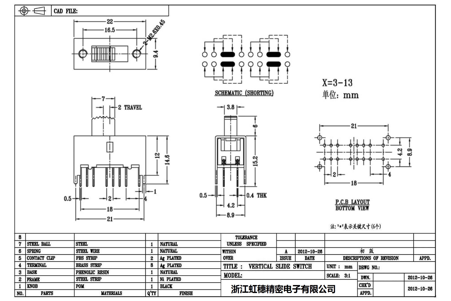 Verticaltoggle switch side dial/ Vertical slide switch technical indicators