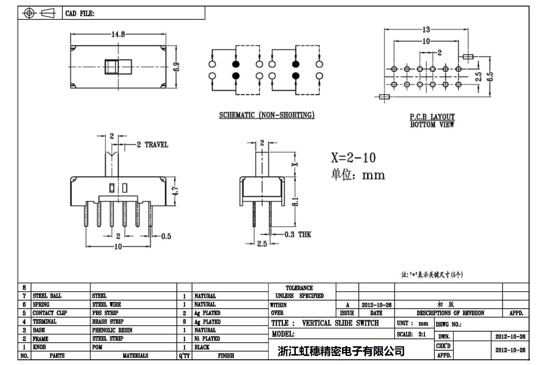 Verticaltoggle switch side dial/ Vertical slide switch technical indicators