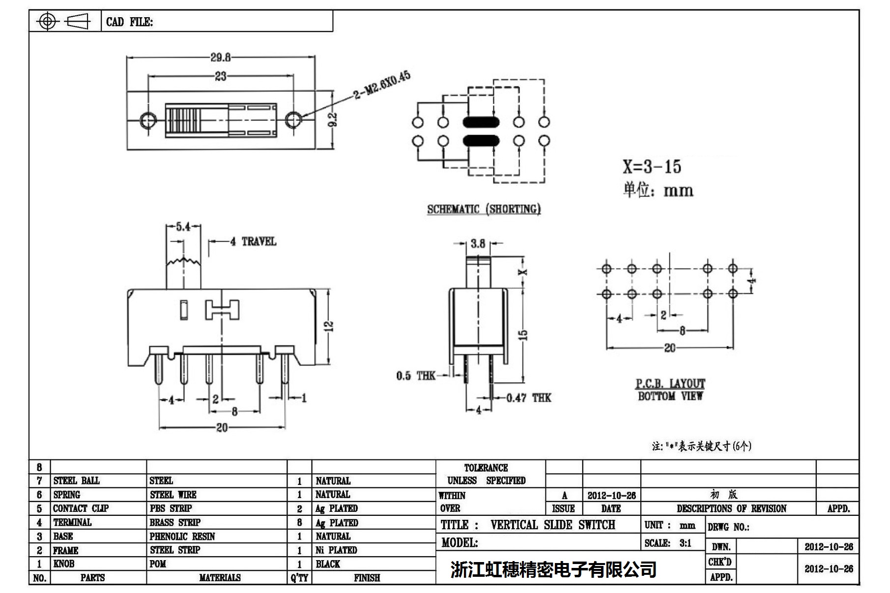 Verticaltoggle switch side dial/ Vertical slide switch technical indicators