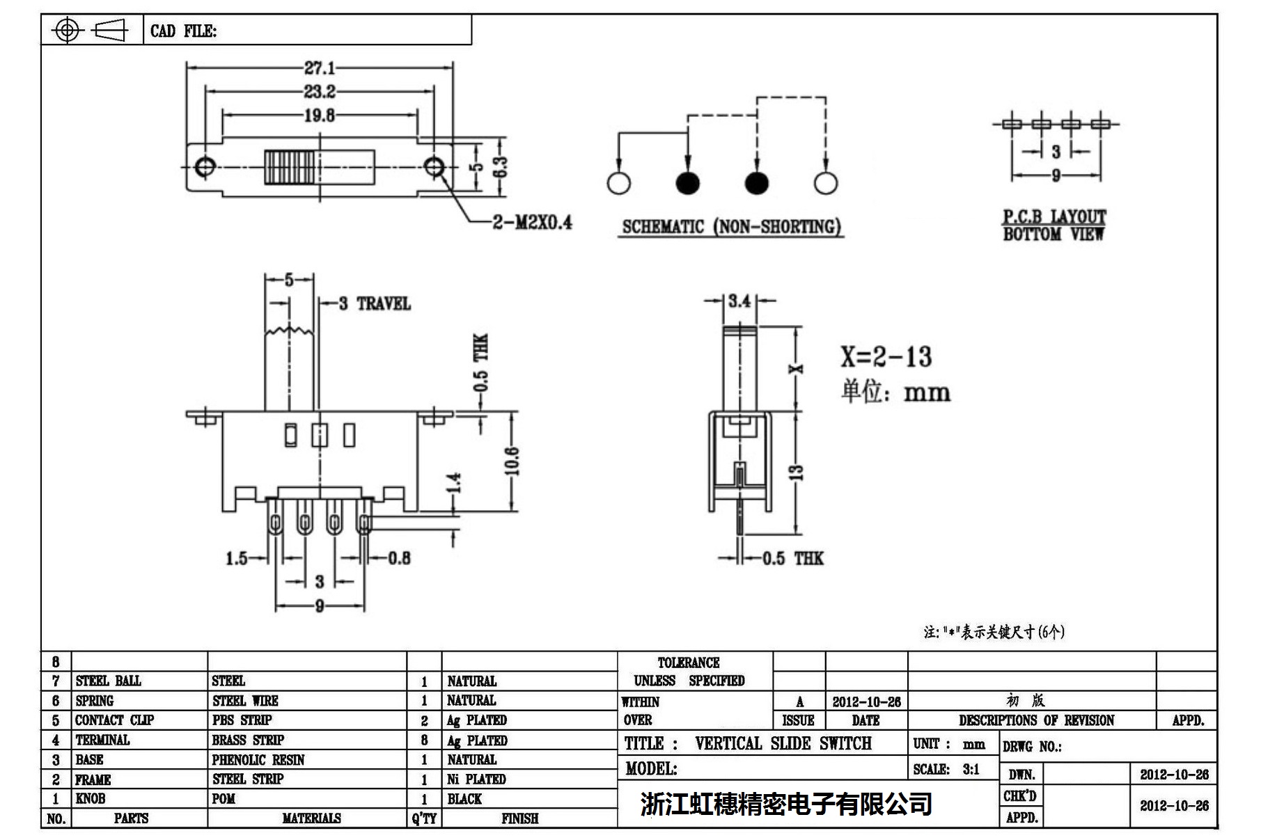 Verticaltoggle switch side dial/ Vertical slide switch technical indicators