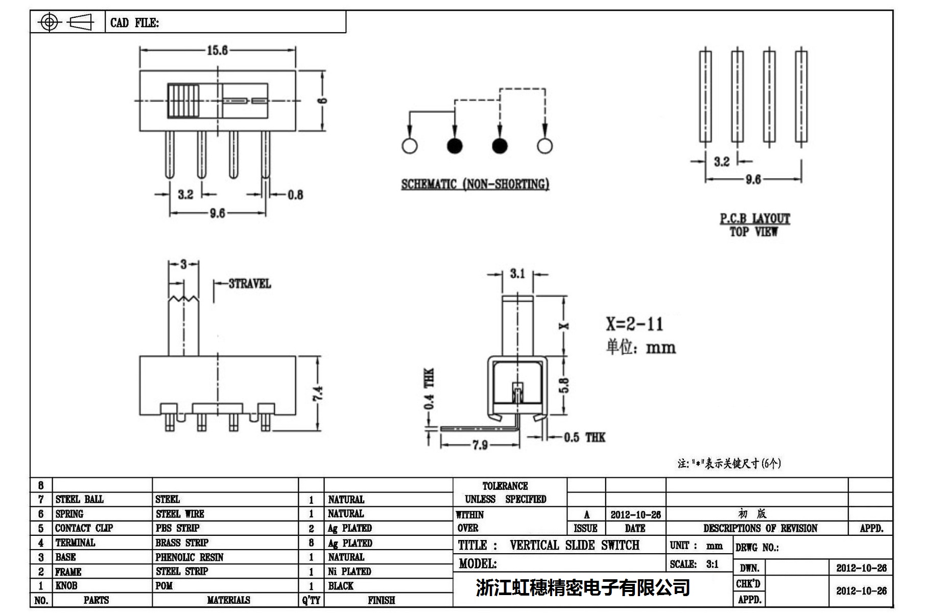 Verticaltoggle switch side dial/ Vertical slide switch technical indicators
