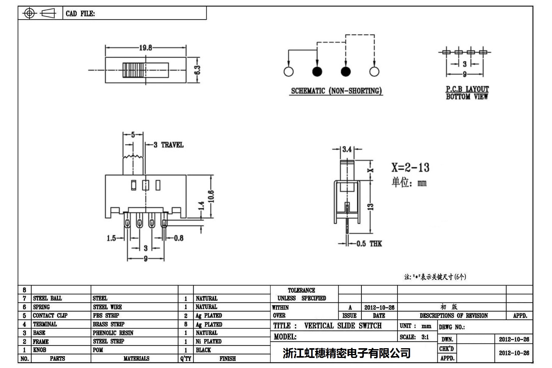 Verticaltoggle switch side dial/ Vertical slide switch technical indicators