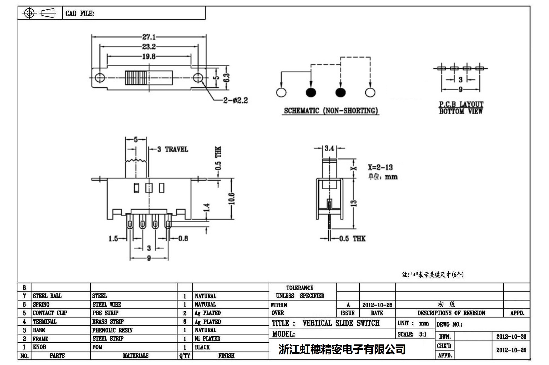 Verticaltoggle switch side dial/ Vertical slide switch technical indicators