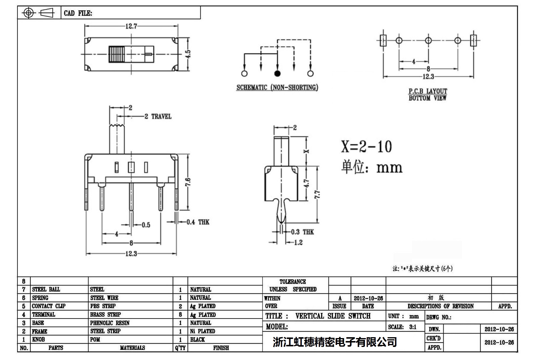 Verticaltoggle switch side dial/ Vertical slide switch technical indicators