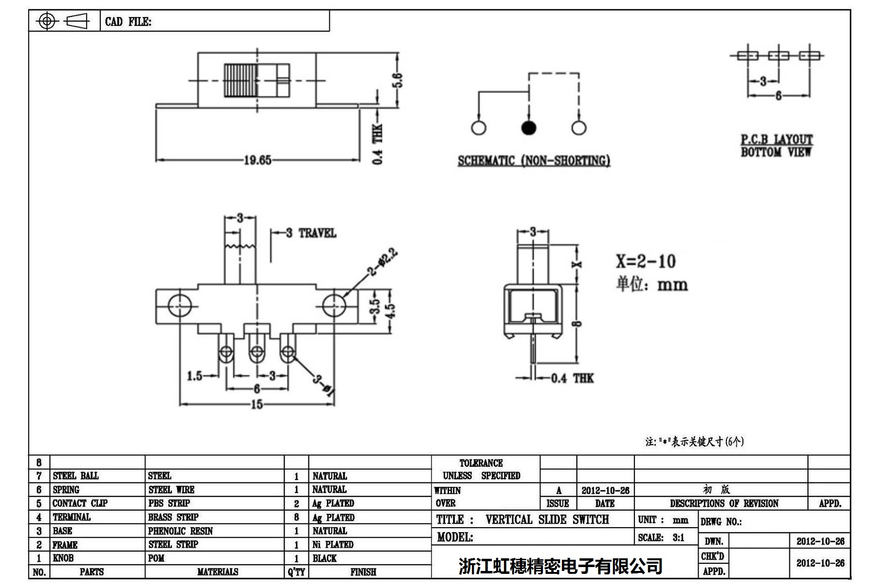 Verticaltoggle switch side dial/ Vertical slide switch technical indicators