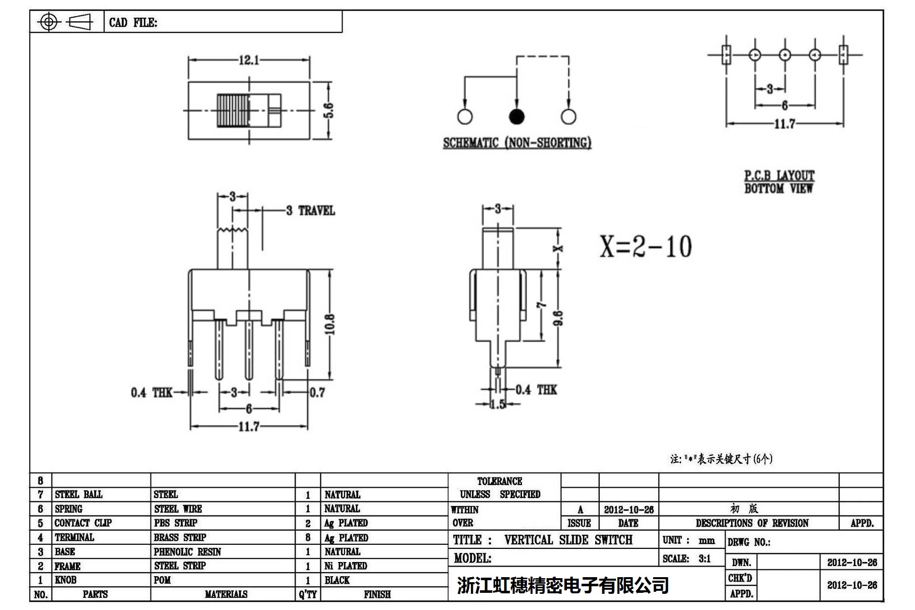 Verticaltoggle switch side dial/ Vertical slide switch technical indicators