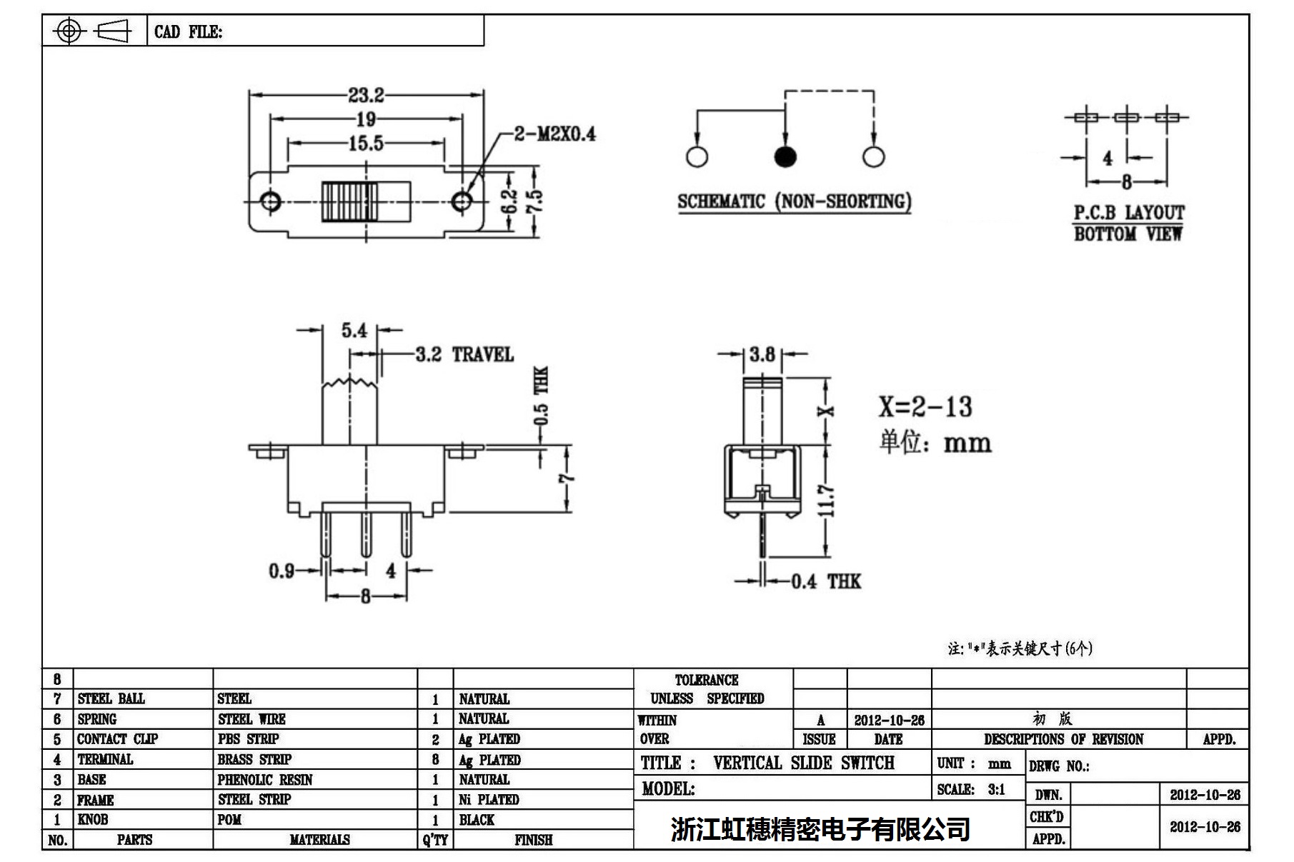 Verticaltoggle switch side dial/ Vertical slide switch technical indicators