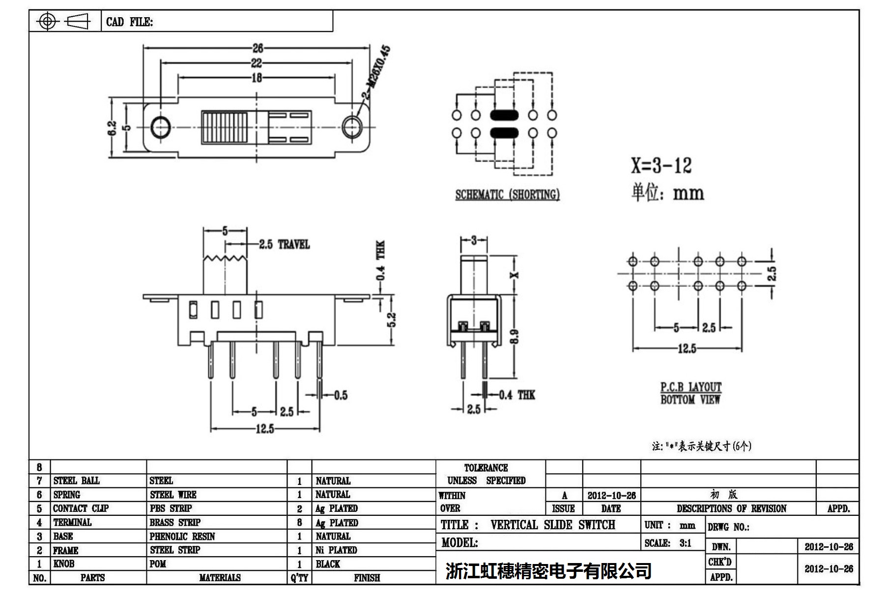 Verticaltoggle switch side dial/ Vertical slide switch technical indicators