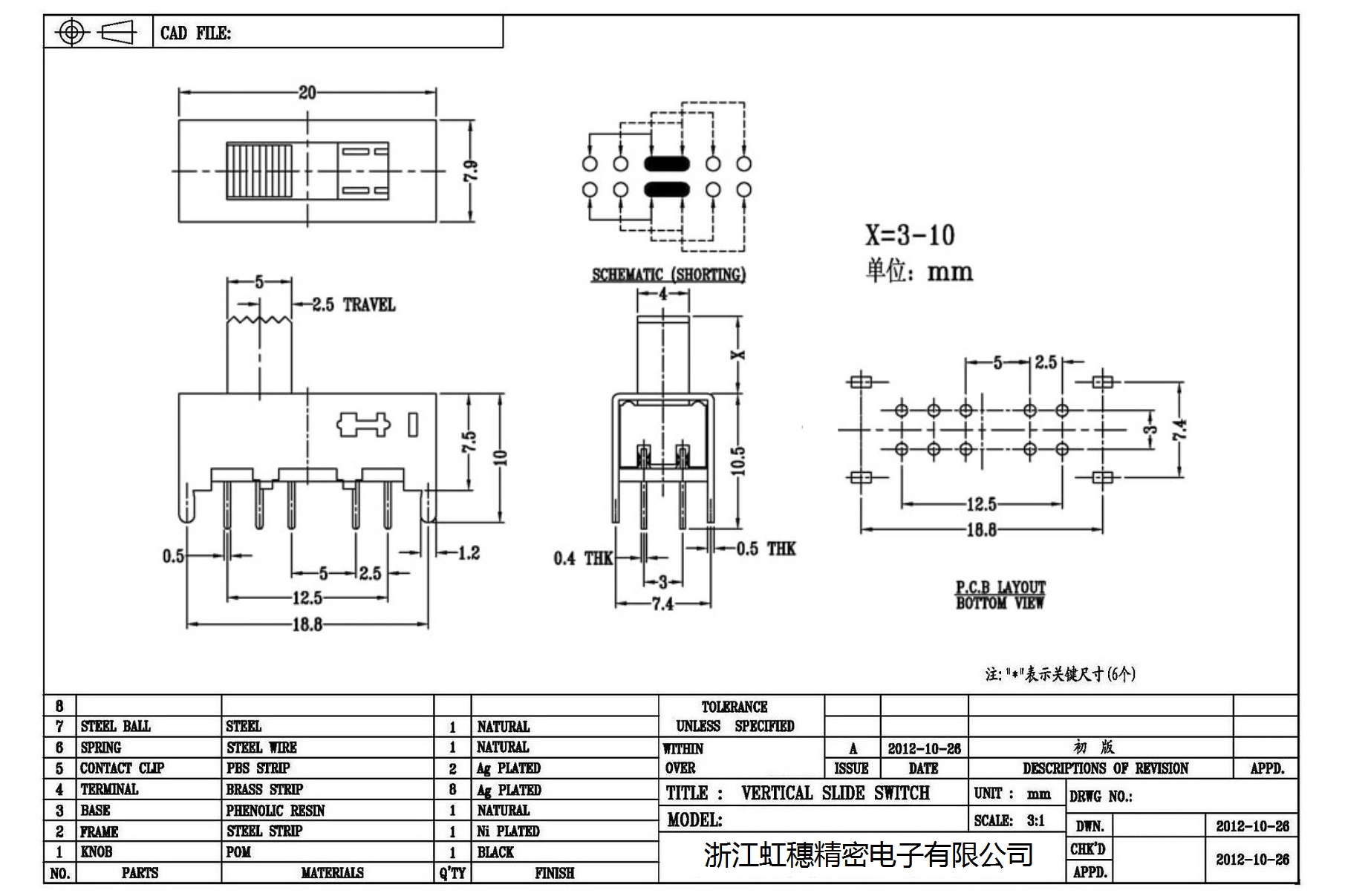 Verticaltoggle switch side dial/ Vertical slide switch technical indicators
