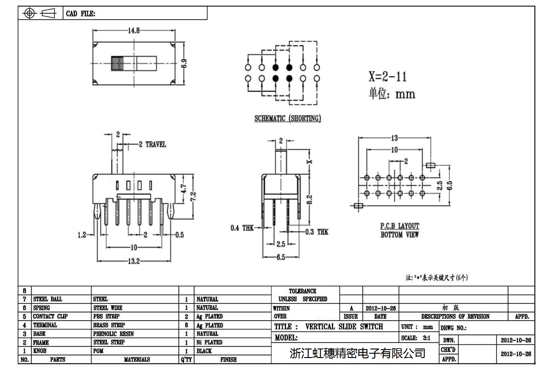 Verticaltoggle switch side dial/ Vertical slide switch technical indicators