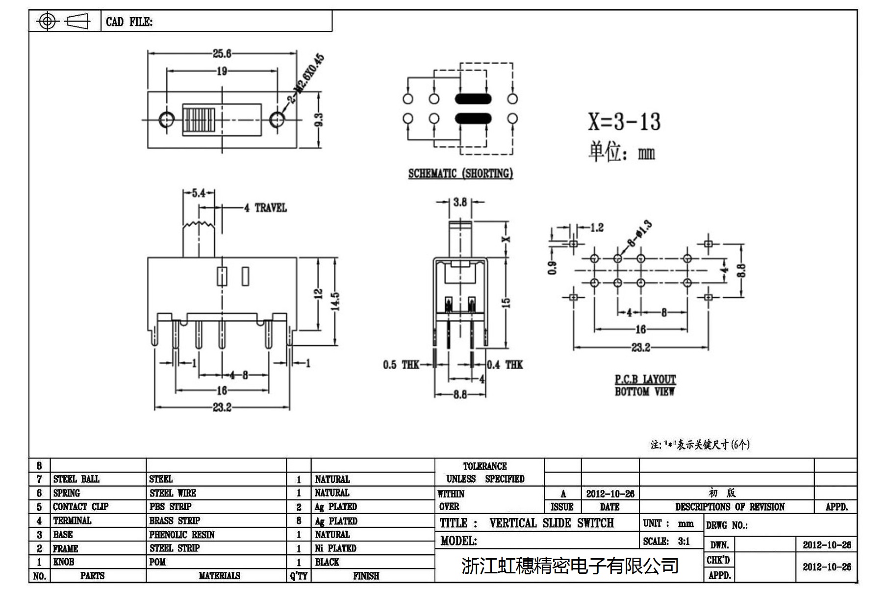 Verticaltoggle switch side dial/ Vertical slide switch technical indicators