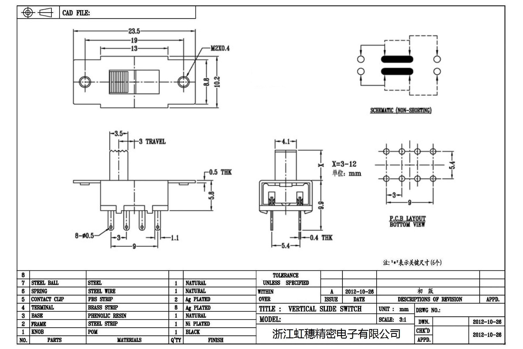 Verticaltoggle switch side dial/ Vertical slide switch technical indicators