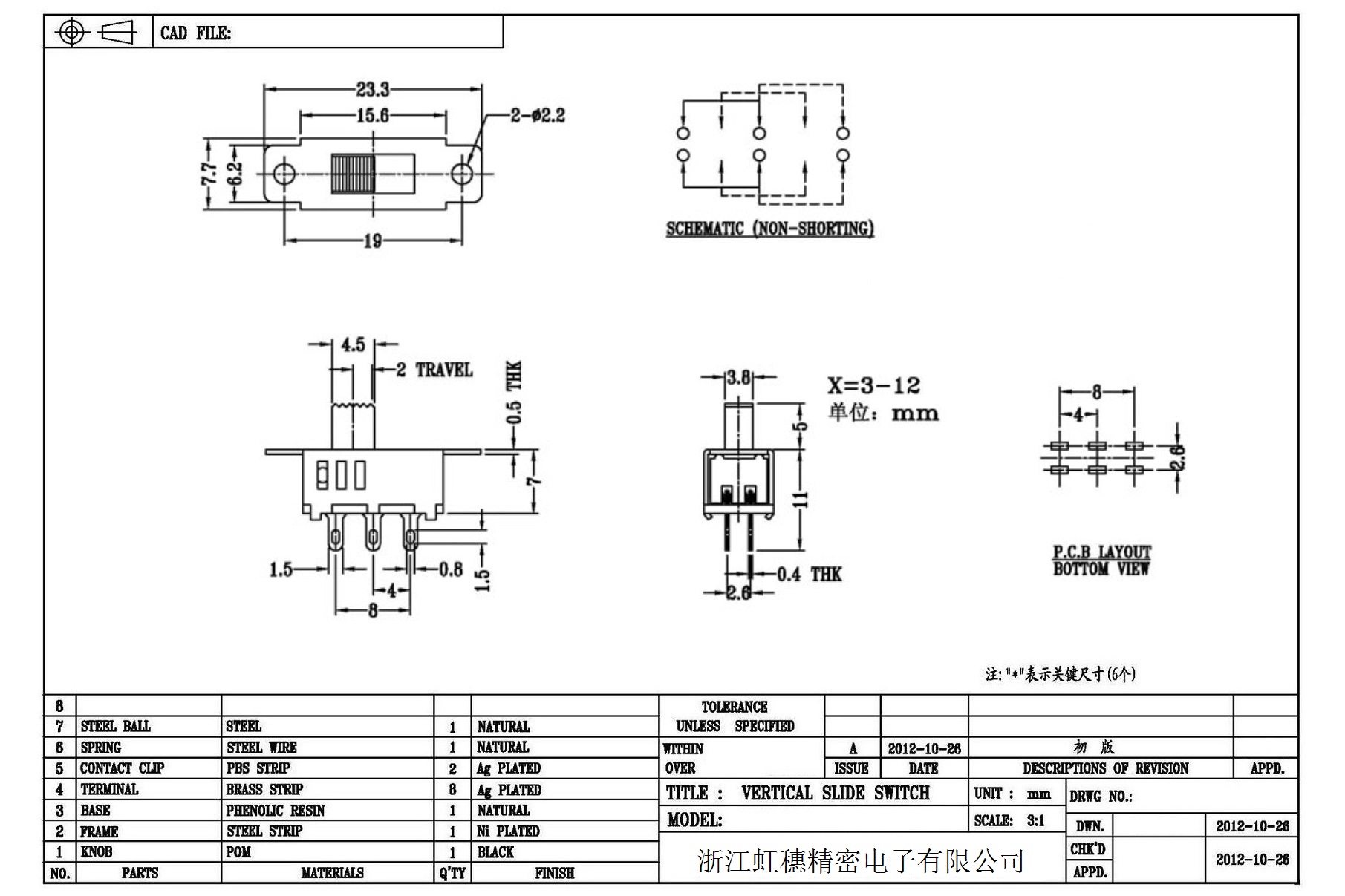 Verticaltoggle switch side dial/ Vertical slide switch technical indicators