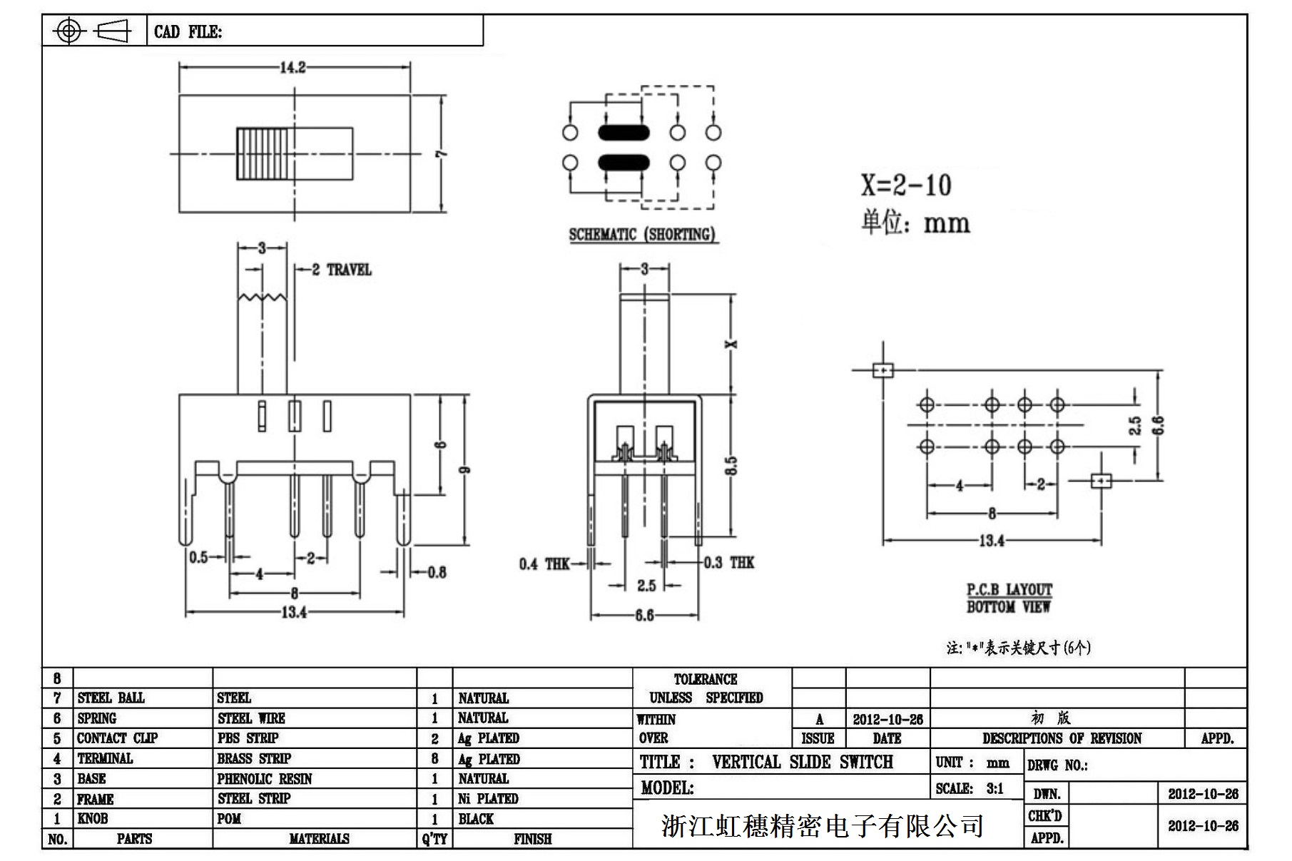 Verticaltoggle switch side dial/ Vertical slide switch technical indicators
