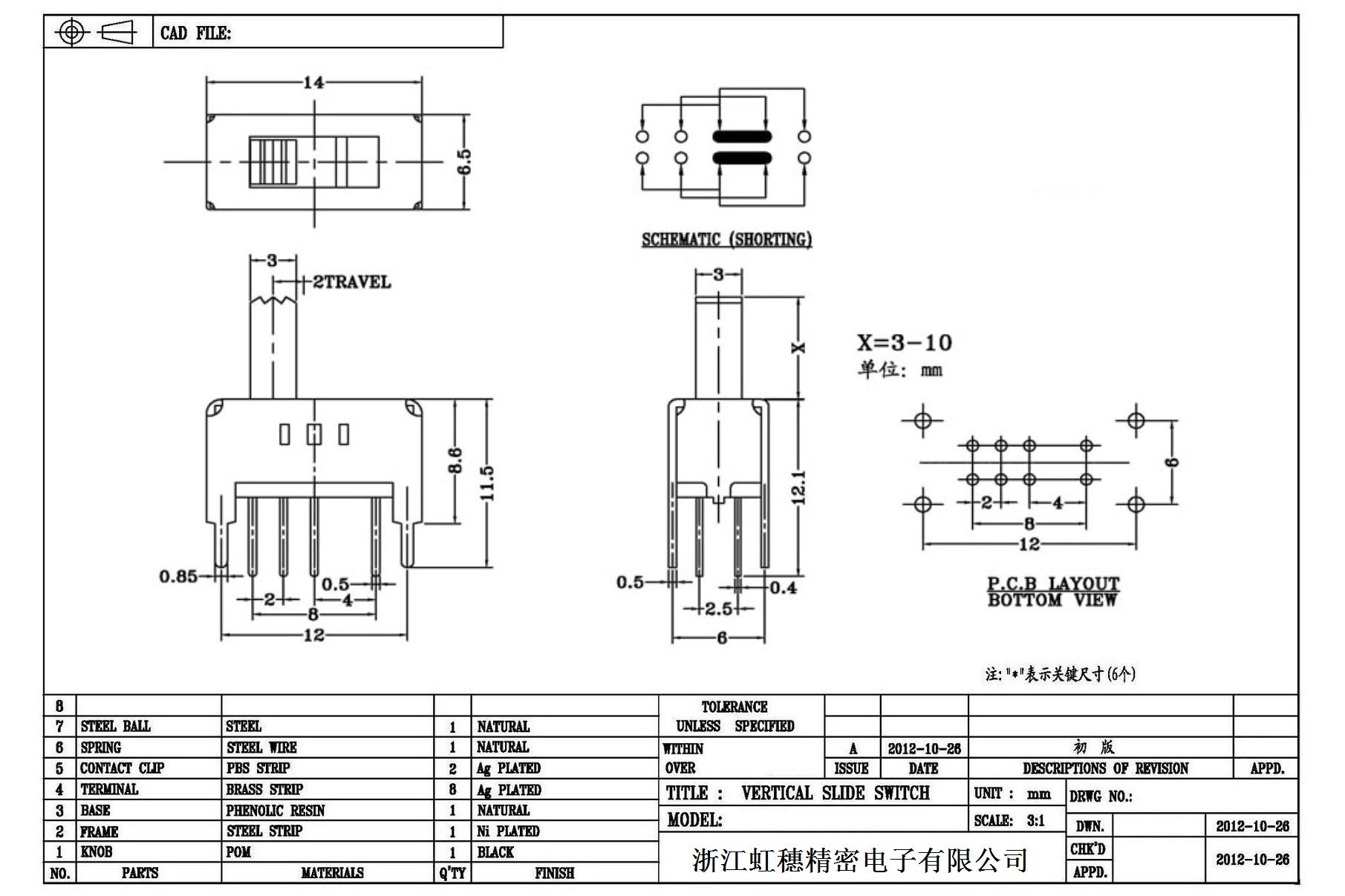 Verticaltoggle switch side dial/ Vertical slide switch technical indicators