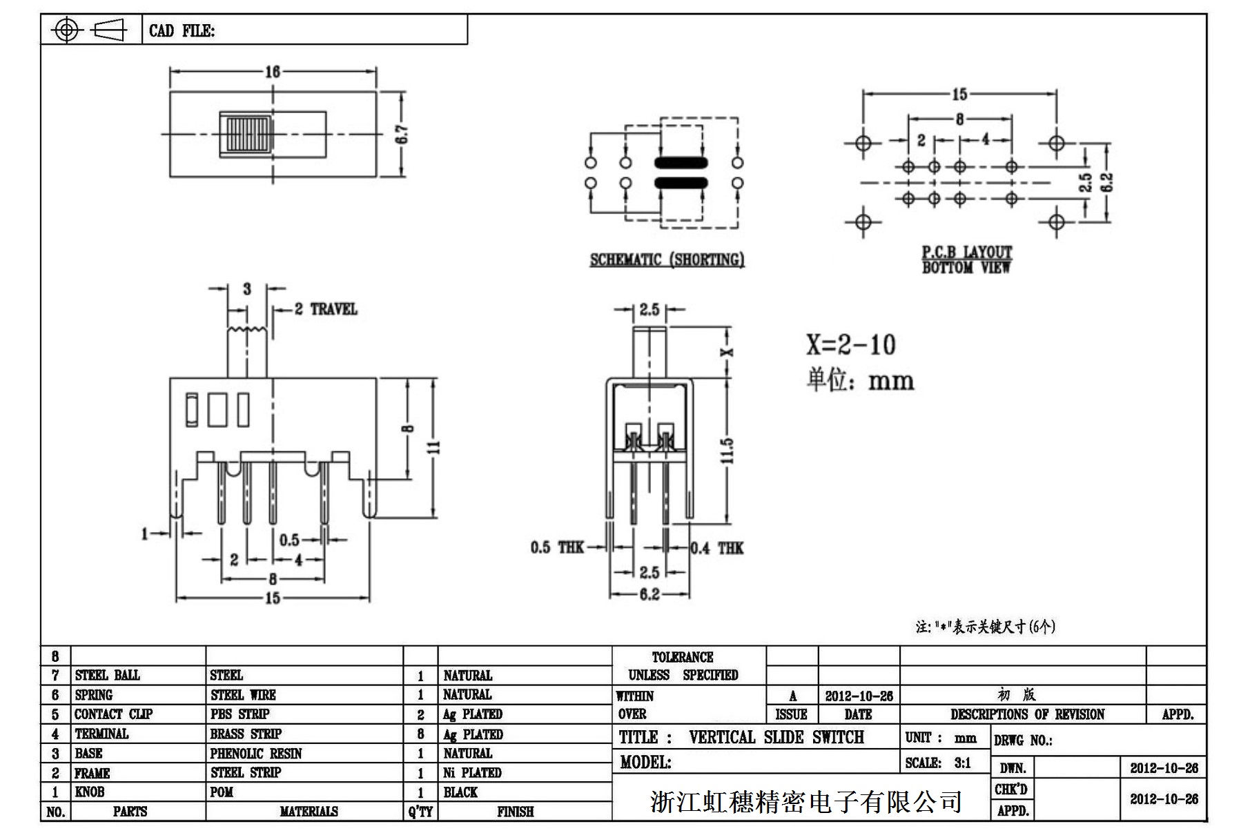 Verticaltoggle switch side dial/ Vertical slide switch technical indicators