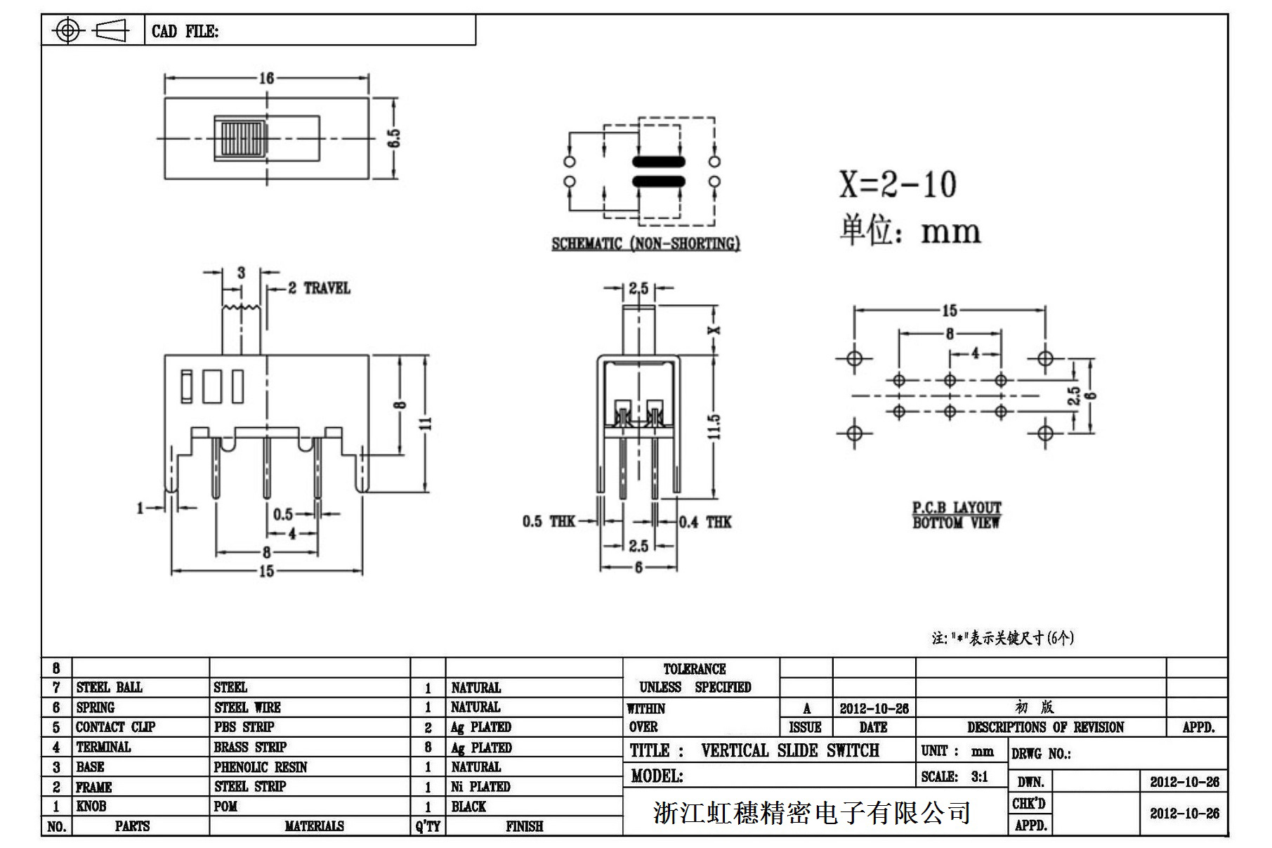 Verticaltoggle switch side dial/ Vertical slide switch technical indicators