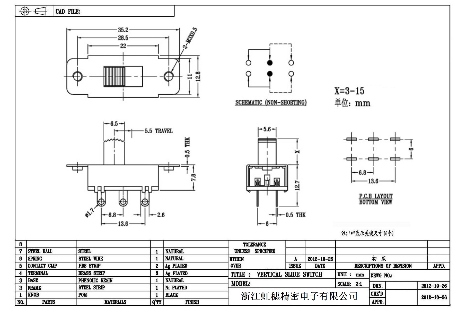 Verticaltoggle switch side dial/ Vertical slide switch technical indicators