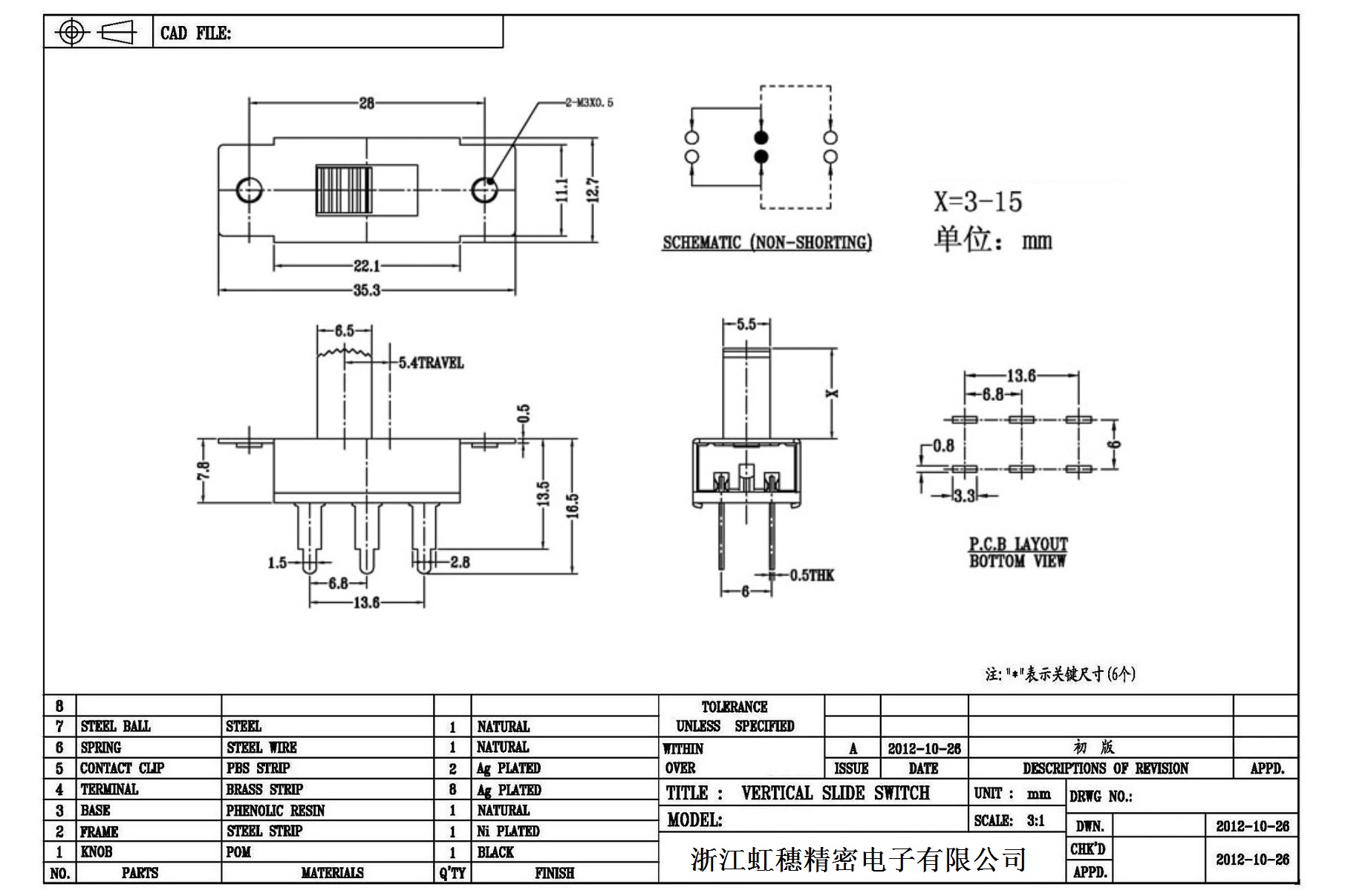 Verticaltoggle switch side dial/ Vertical slide switch technical indicators