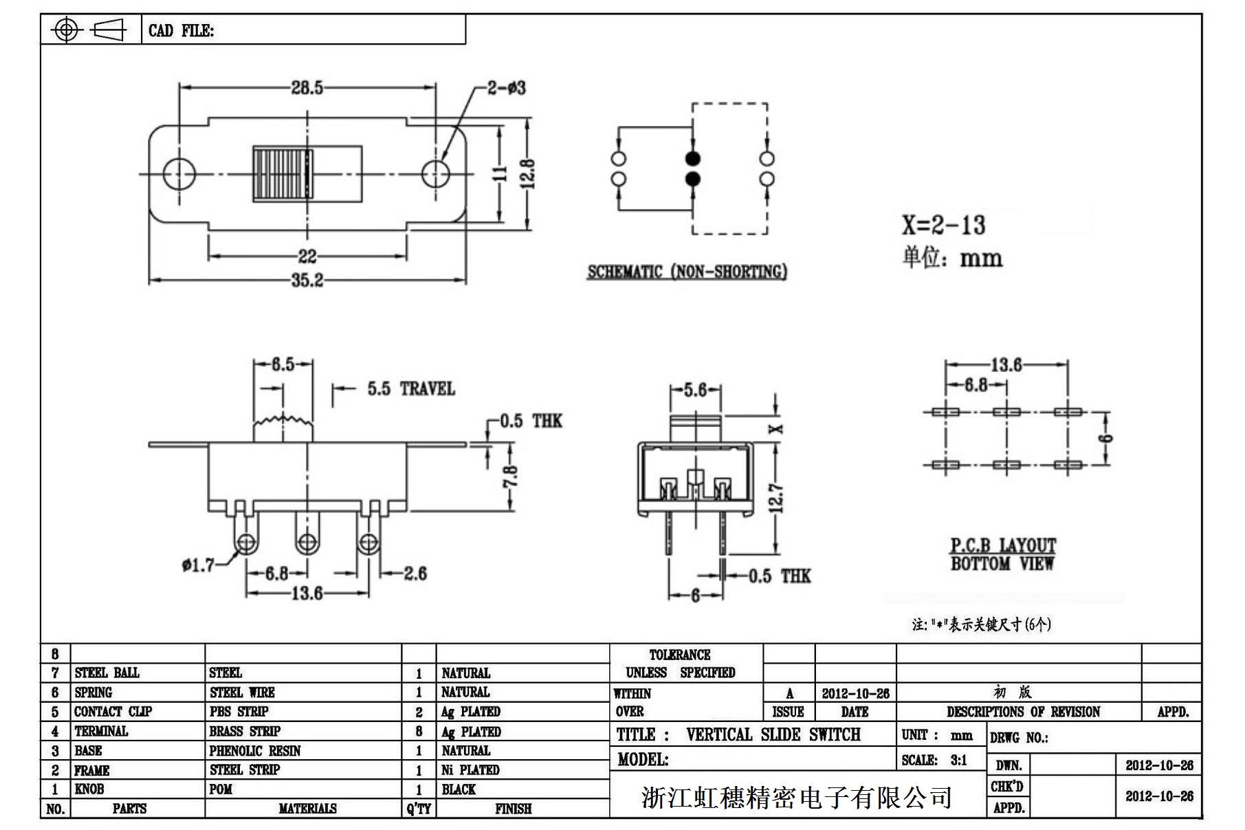 Verticaltoggle switch side dial/ Vertical slide switch technical indicators