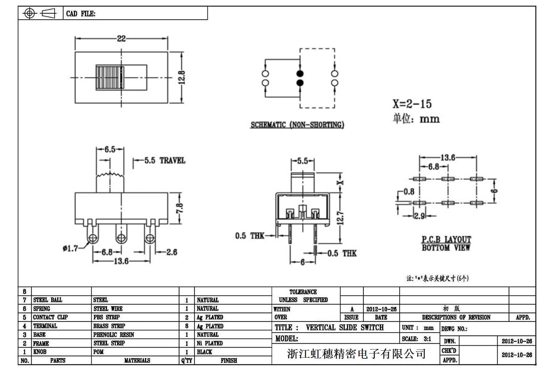 Verticaltoggle switch side dial/ Vertical slide switch technical indicators