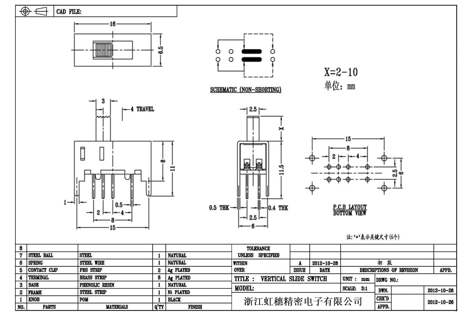 Verticaltoggle switch side dial/ Vertical slide switch technical indicators