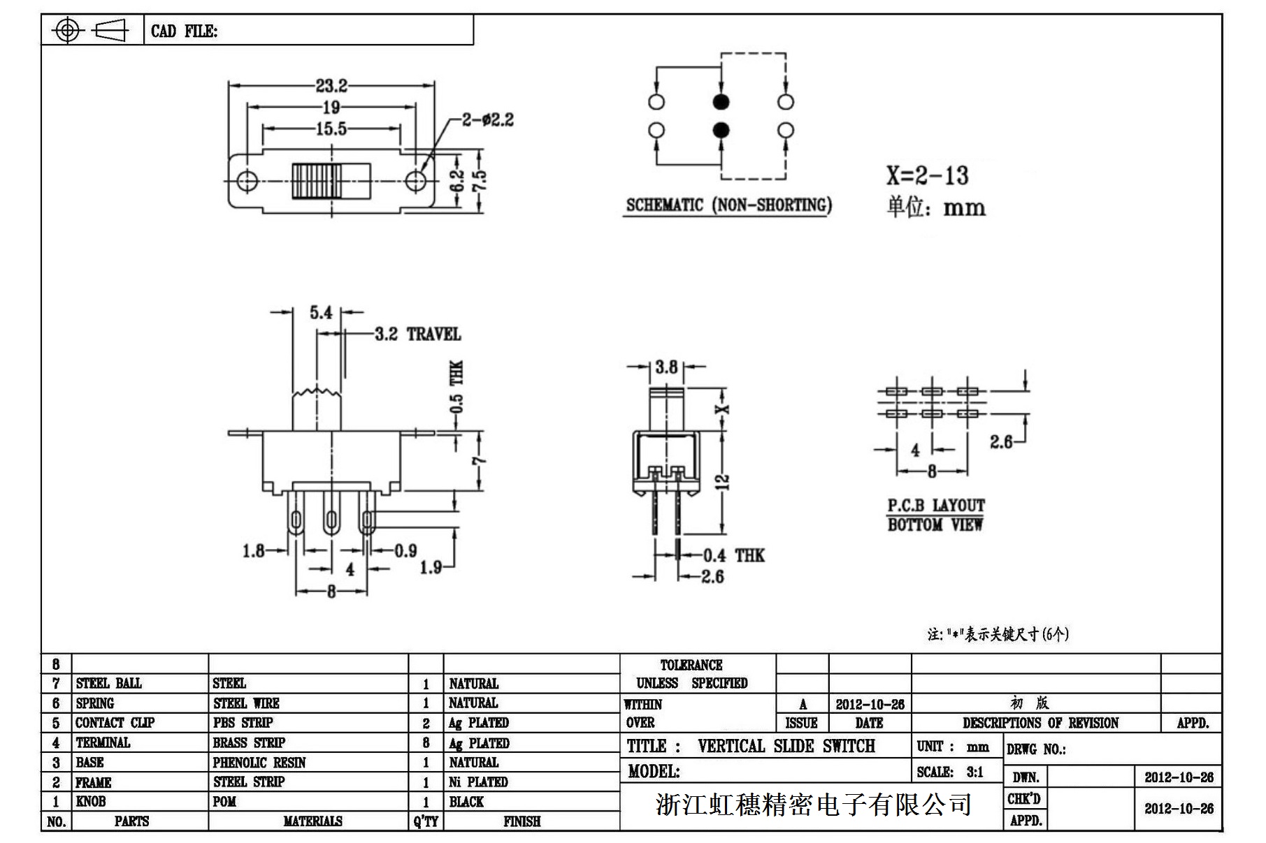 Verticaltoggle switch side dial/ Vertical slide switch technical indicators