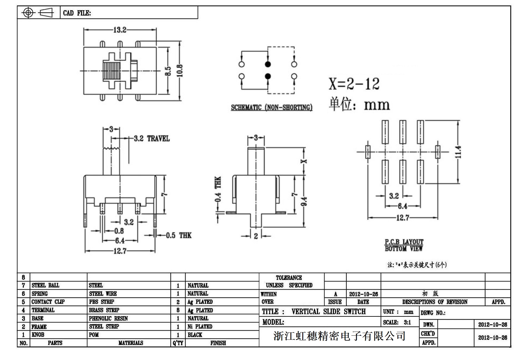 Verticaltoggle switch side dial/ Vertical slide switch technical indicators