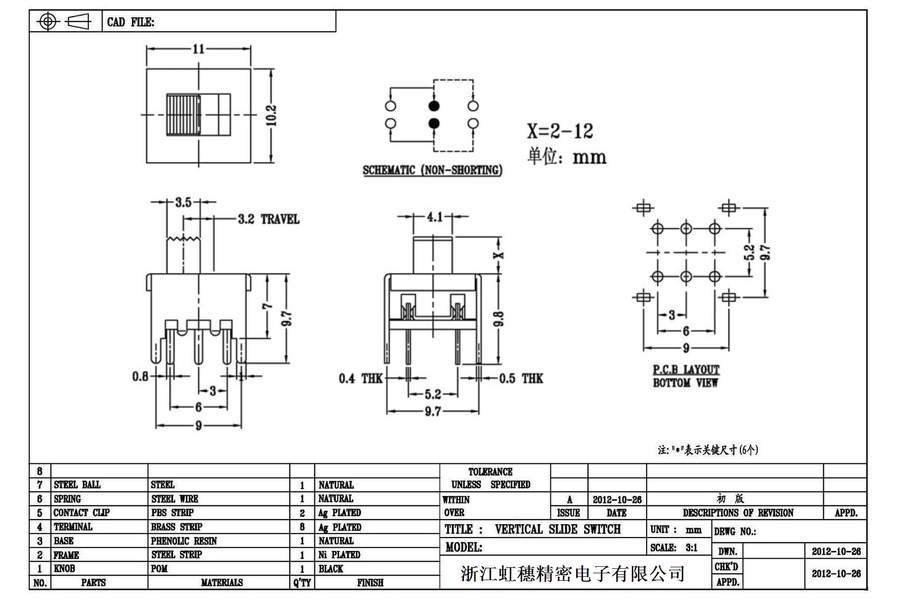 Verticaltoggle switch side dial/ Vertical slide switch technical indicators