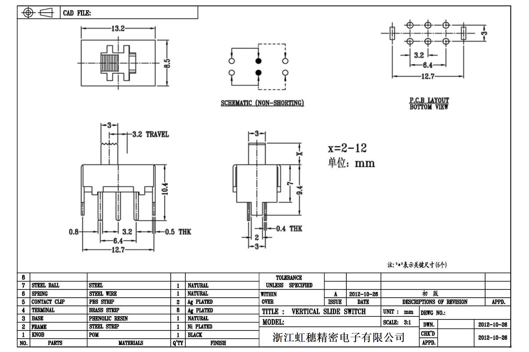 Verticaltoggle switch side dial/ Vertical slide switch technical indicators