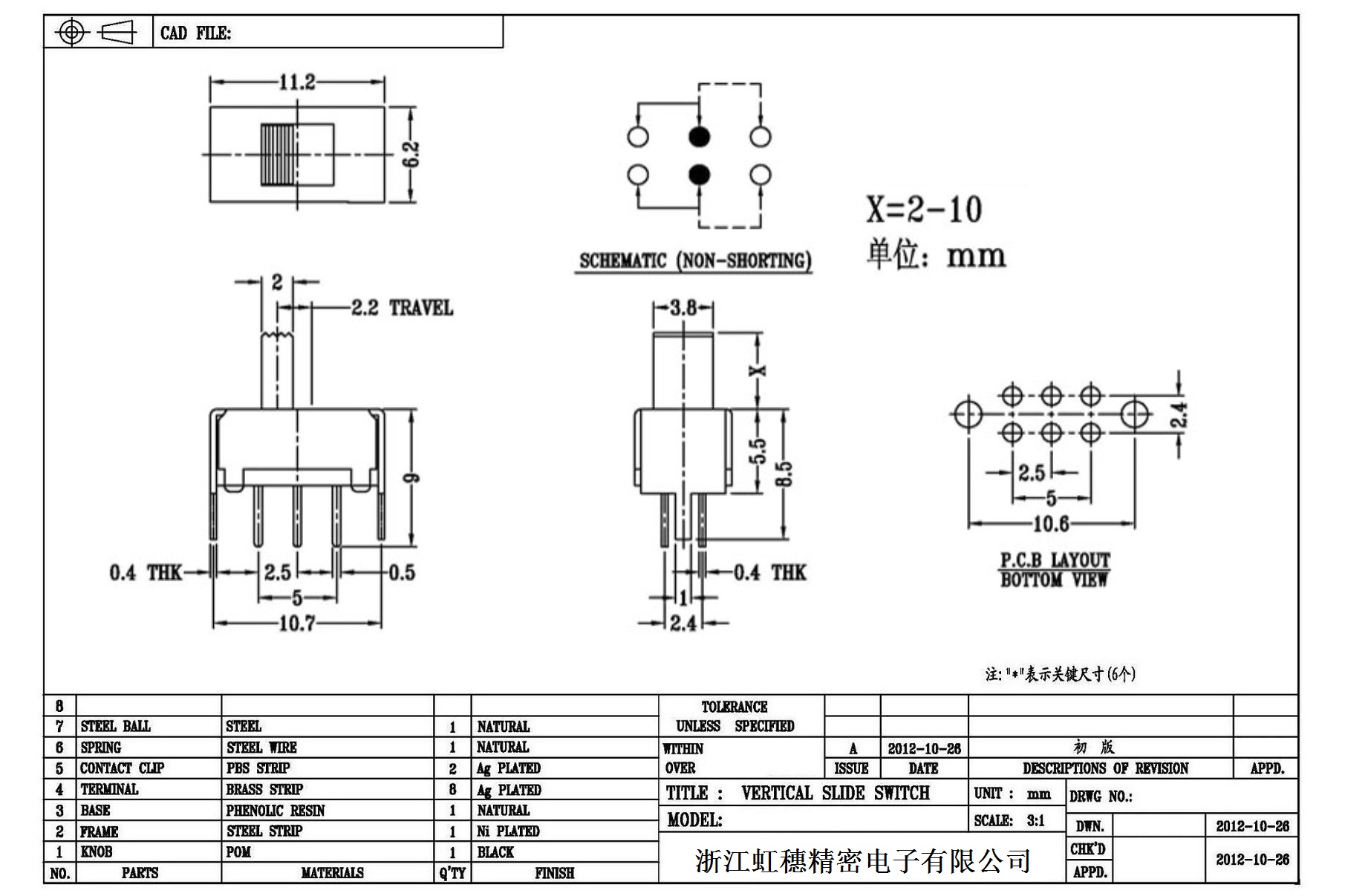 Verticaltoggle switch side dial/ Vertical slide switch technical indicators
