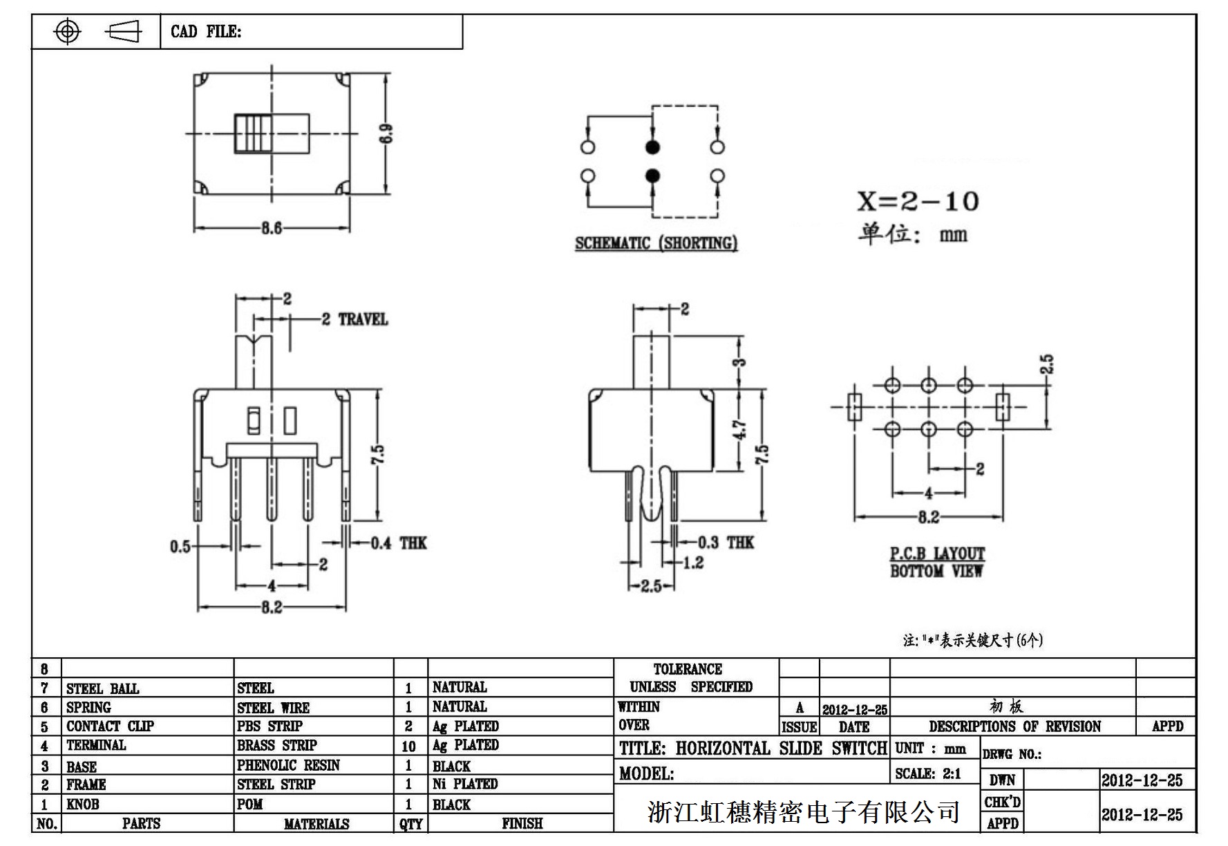 Verticaltoggle switch side dial/ Vertical slide switch technical indicators