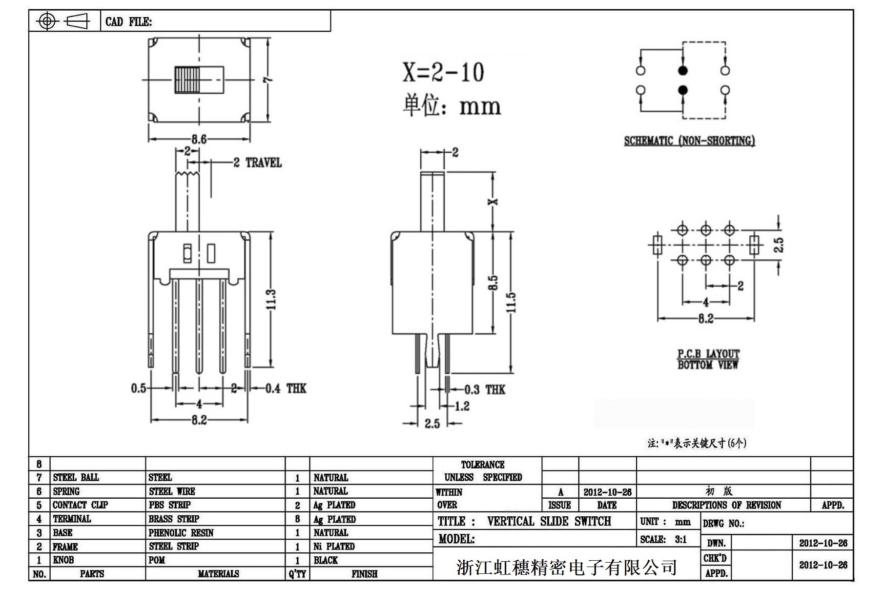 Verticaltoggle switch side dial/ Vertical slide switch technical indicators