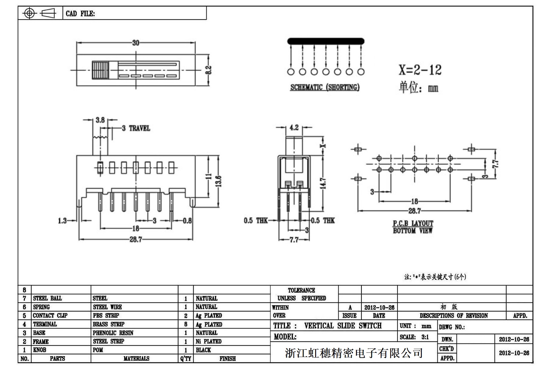 Verticaltoggle switch side dial/ Vertical slide switch technical indicators