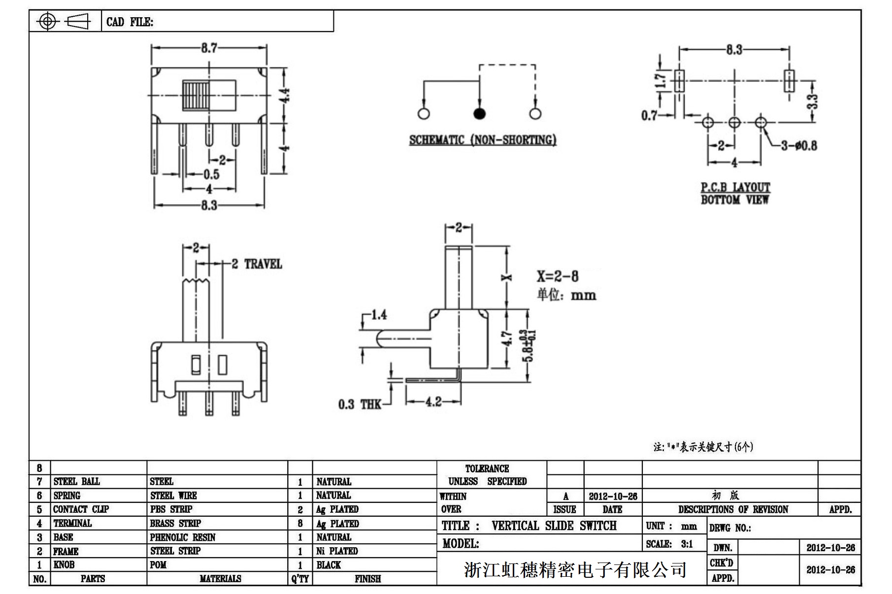 Verticaltoggle switch side dial/ Vertical slide switch technical indicators