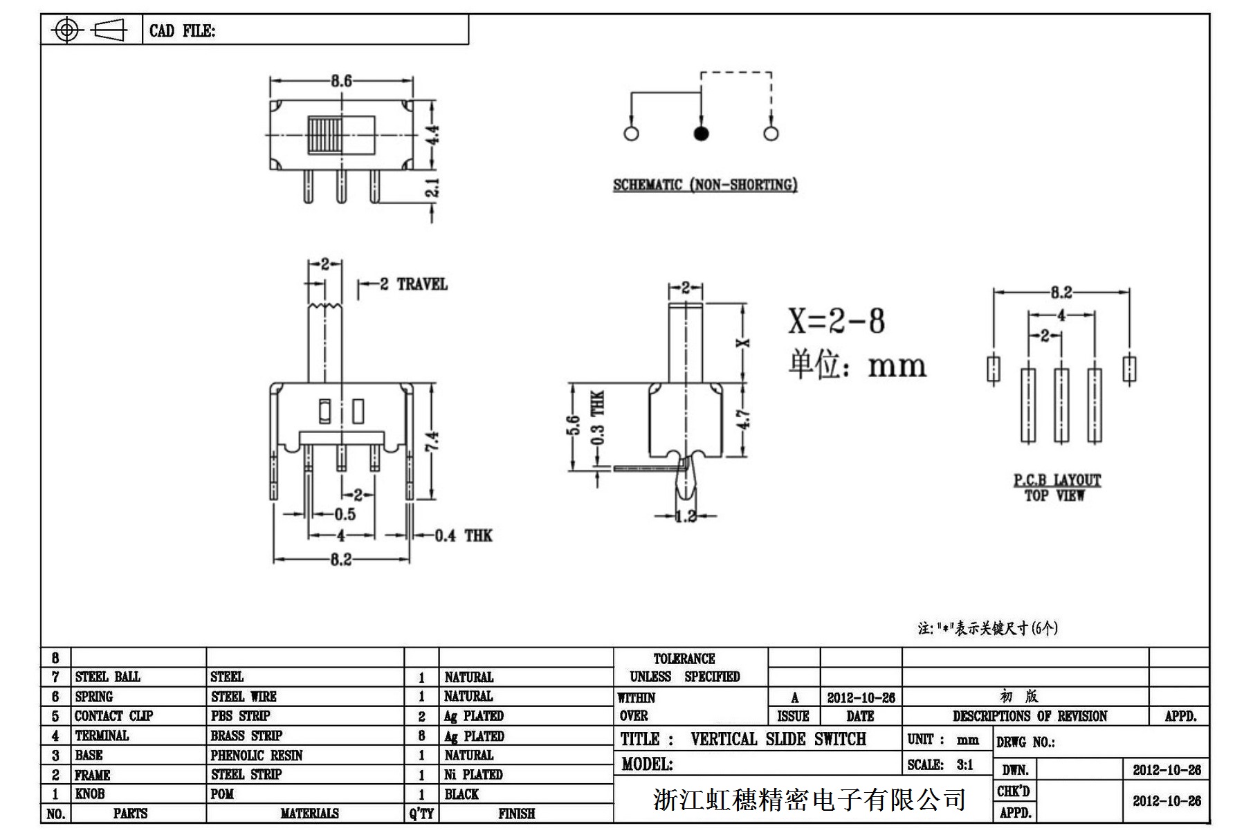 Verticaltoggle switch side dial/ Vertical slide switch technical indicators