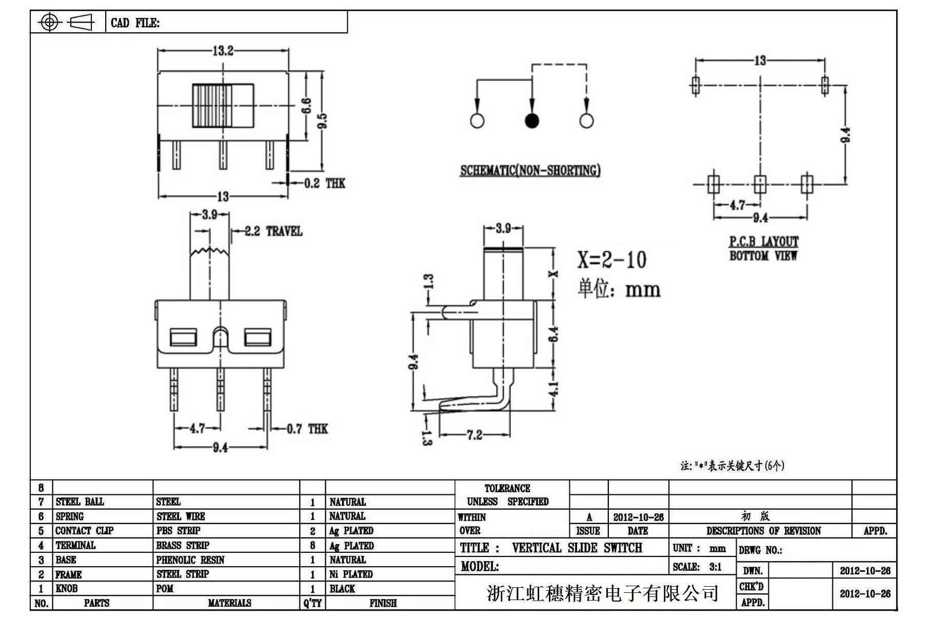 Verticaltoggle switch side dial/ Vertical slide switch technical indicators