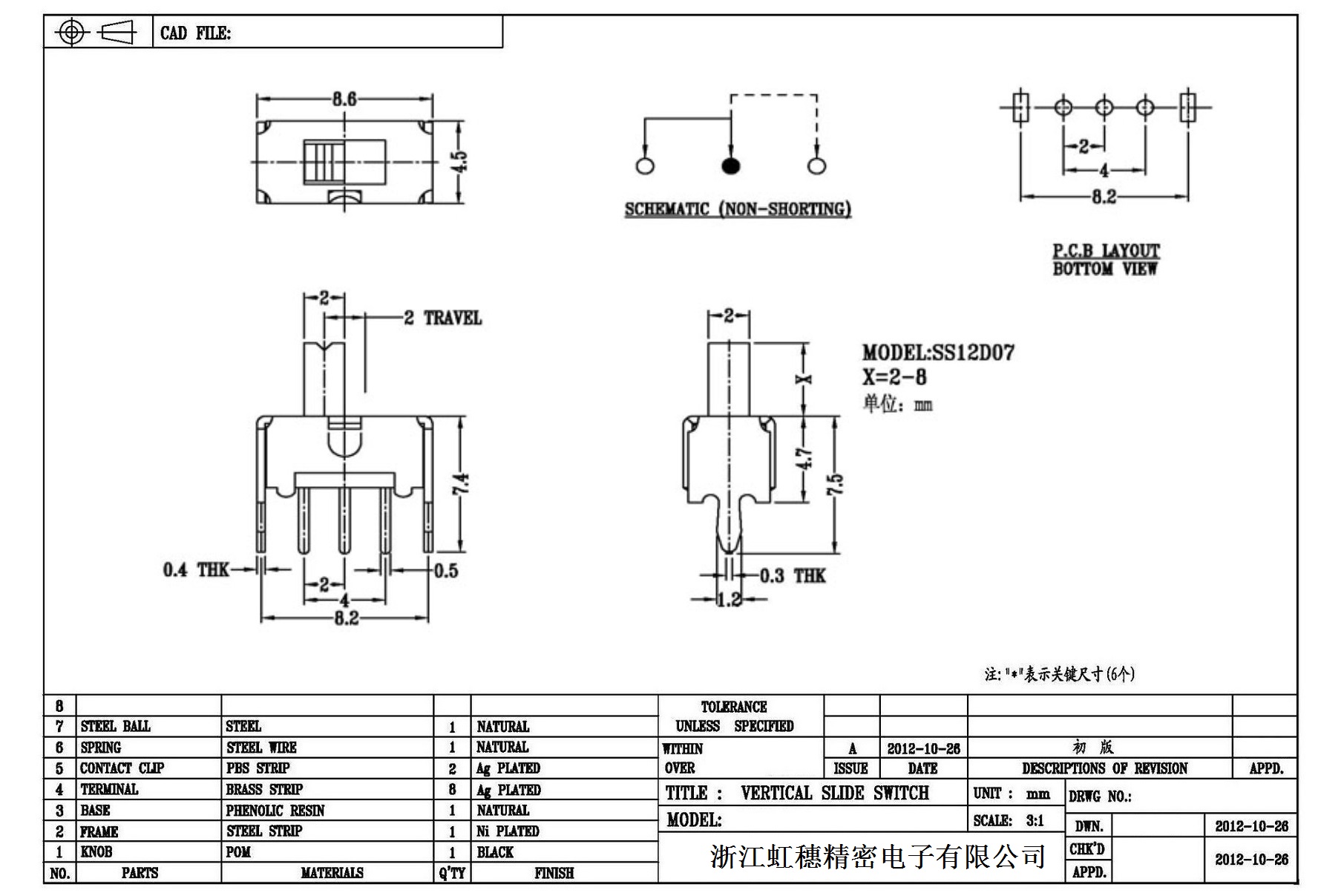 Verticaltoggle switch side dial/ Vertical slide switch technical indicators