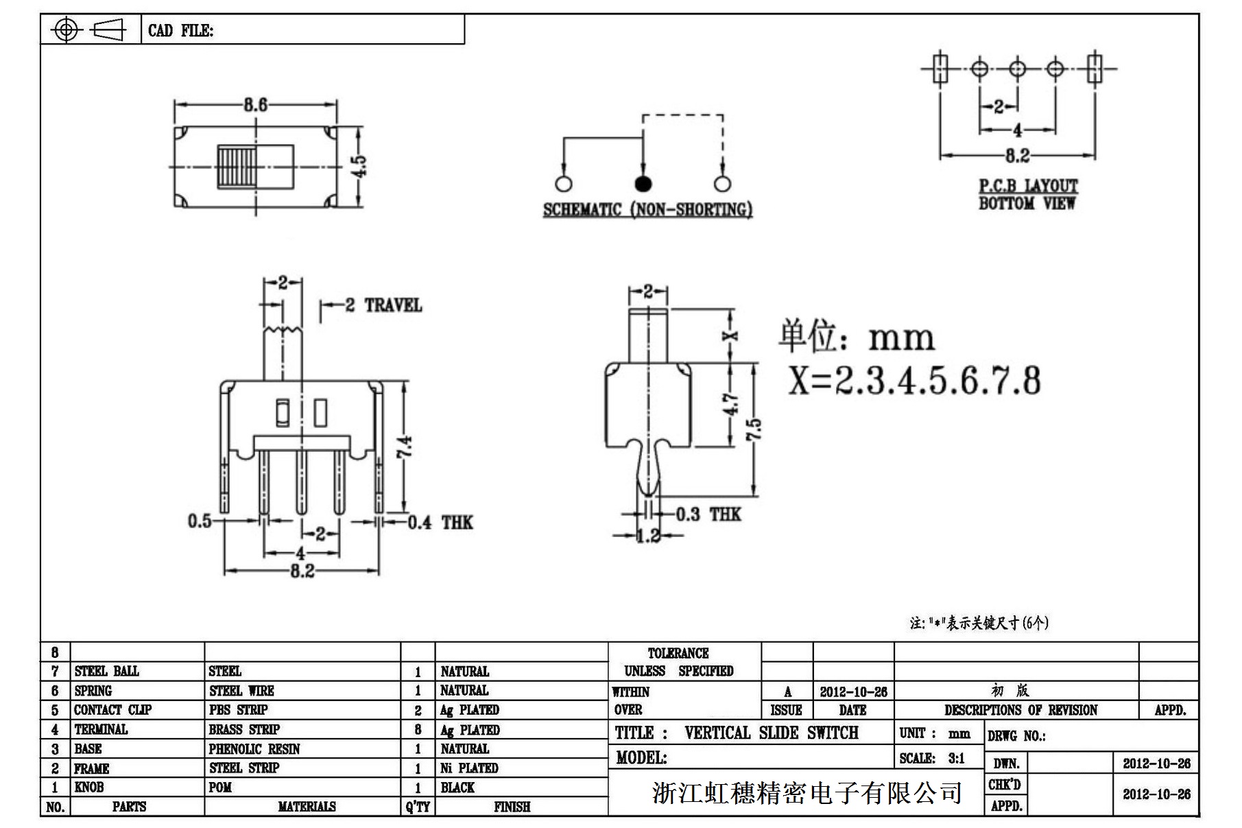 Verticaltoggle switch side dial/ Vertical slide switch technical indicators