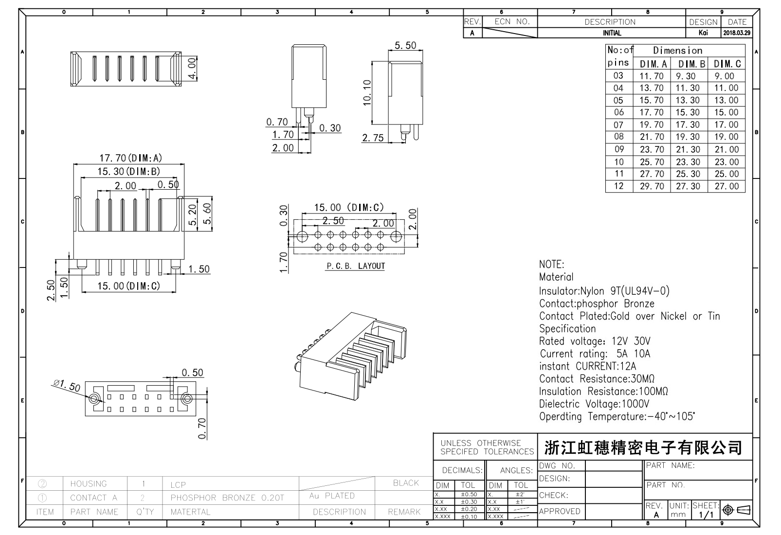 絕緣主體:Nylon 6T/9TUL94V-0