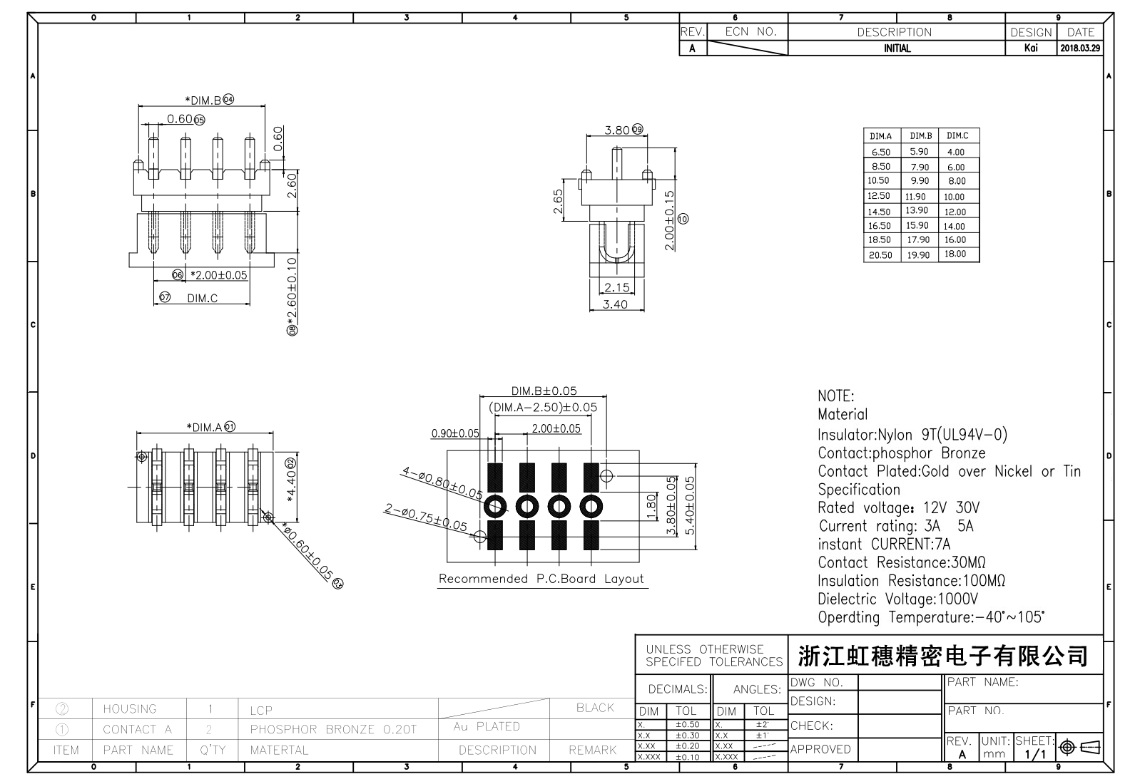 表面鍍層:金在鎳/錫之上,鍍層厚度3U