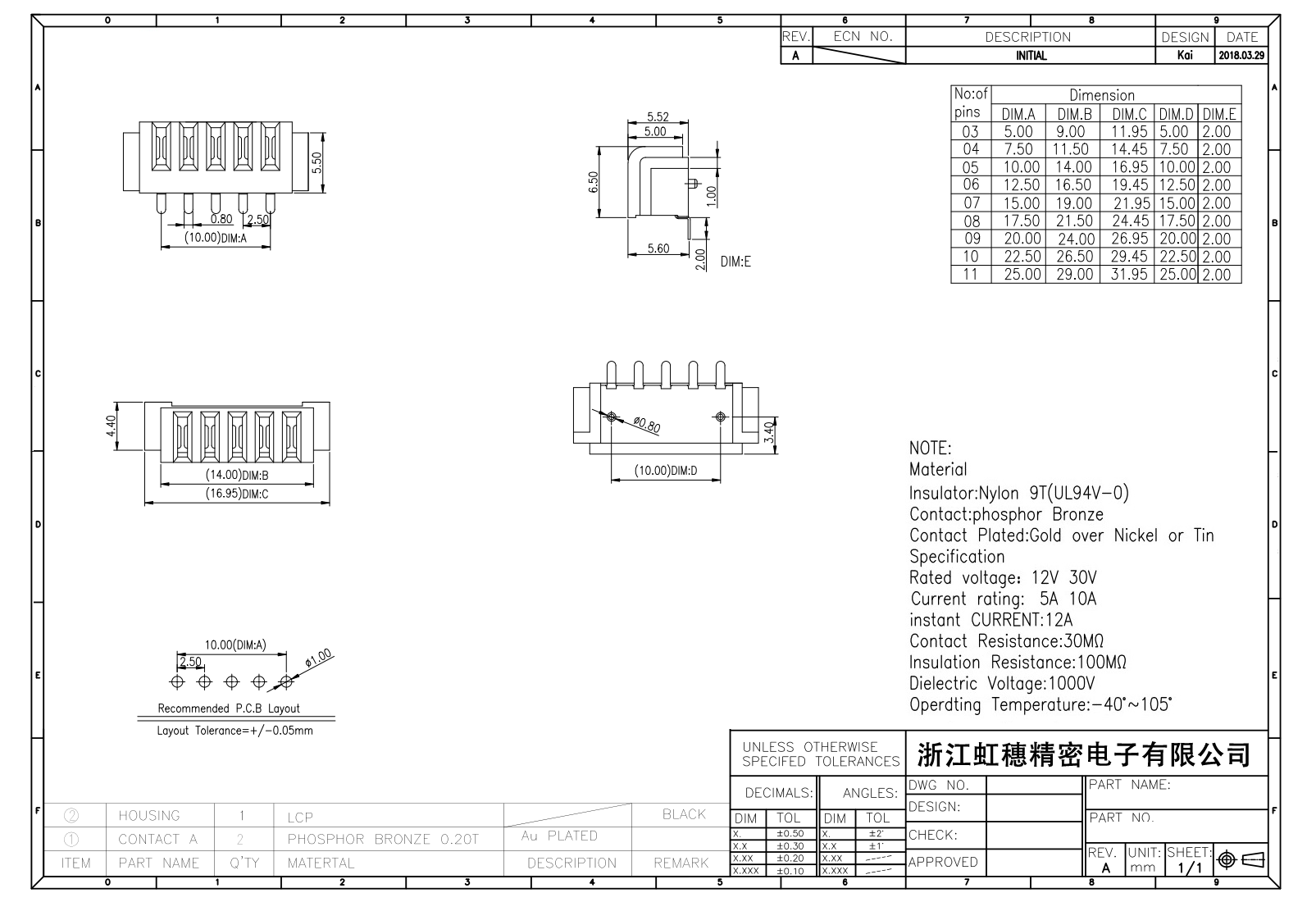 絕緣主體:Nylon 6T/9TUL94V-0