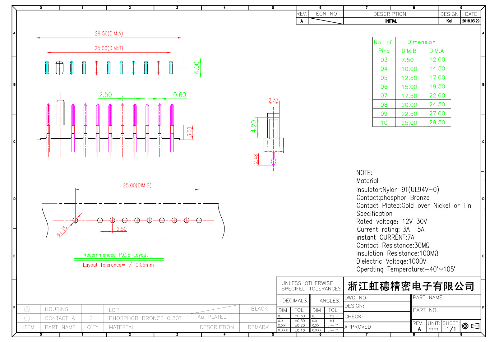 絕緣主體:Nylon 6T/9T(UL94V-0)