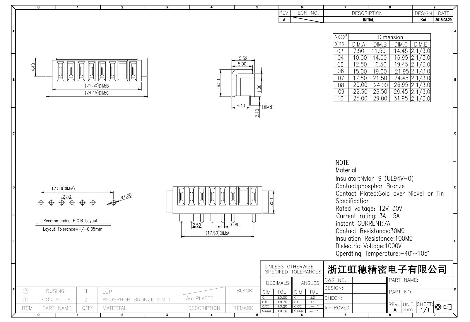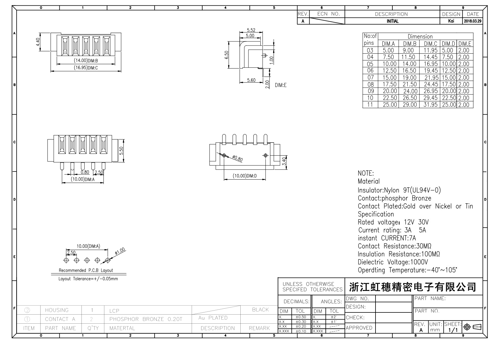 表面鍍層:金在鎳/錫之上,鍍層厚度3U