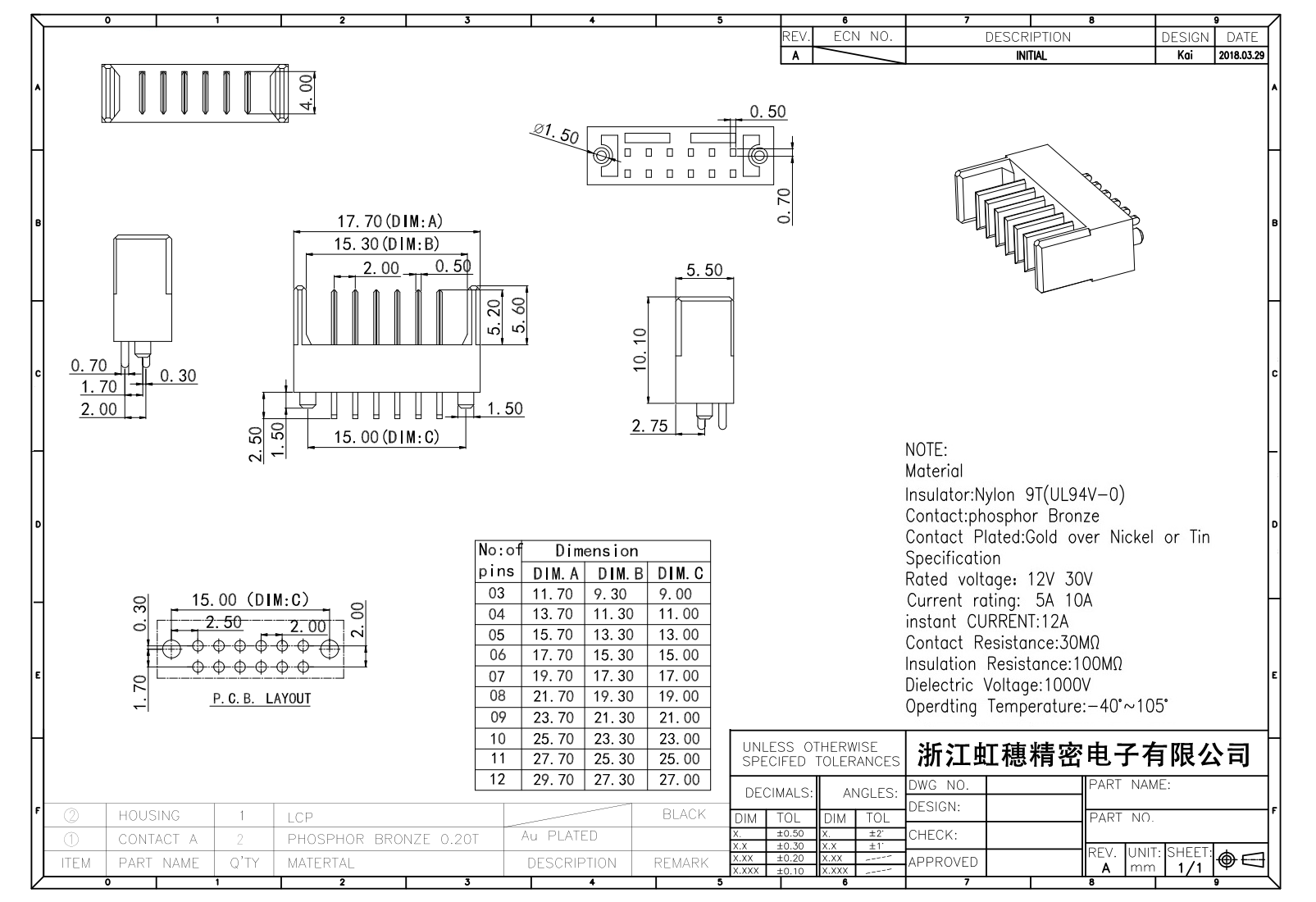 表面鍍層:金在鎳/錫之上,鍍層厚度3U
